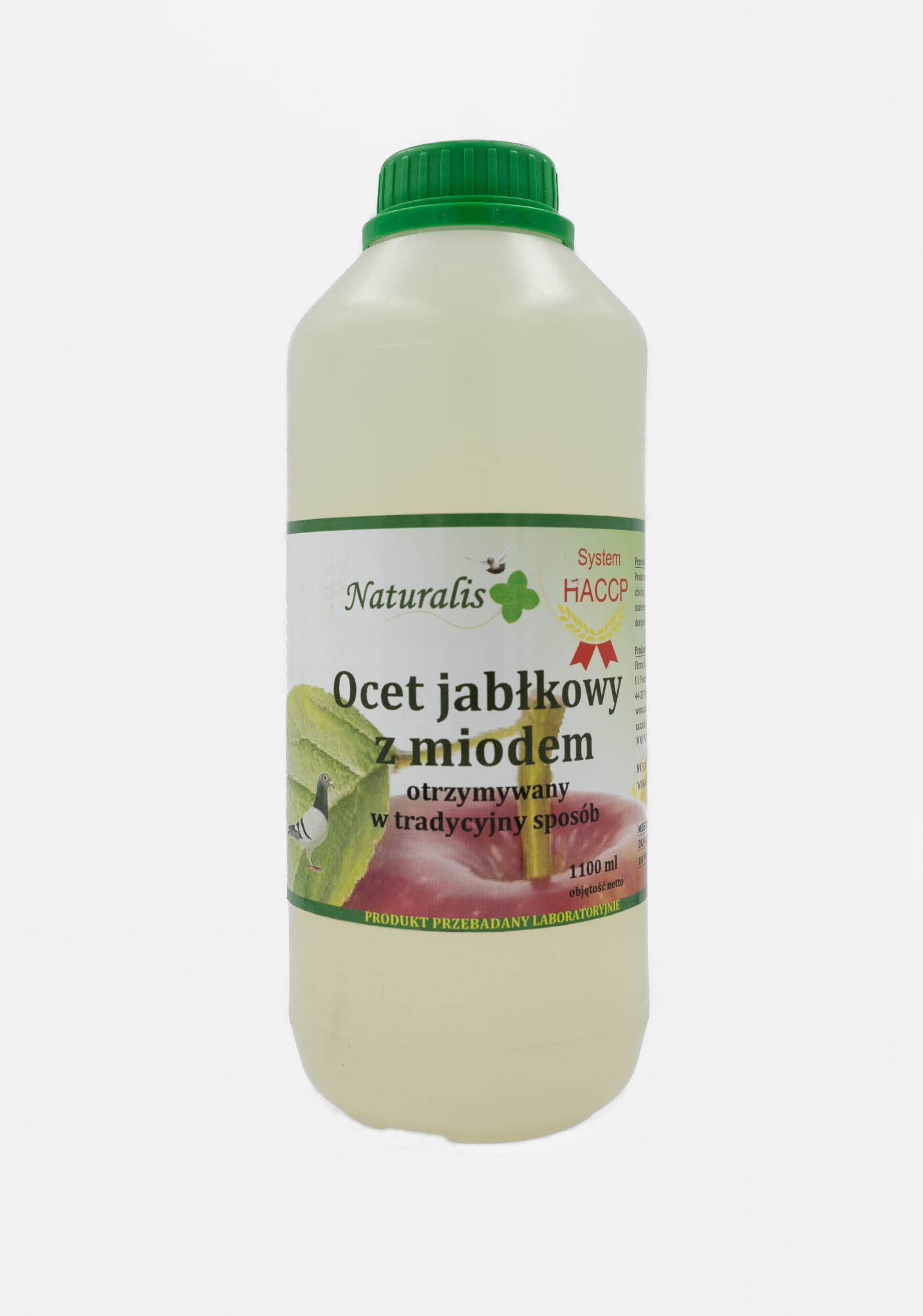 Ocet jabłkowy z miodem ma silne działanie zakwaszające, dzięki czemu zabezpiecza organizm gołębia przed namnażaniem się pasożytów układu pokarmowego. Ponadto posiada działanie odświeżające krew, przyspiesza produkcję czerwonych krwinek, które transportują tlen do mięśni. Stanowi doskonałą dezynfekcję poidełek oraz wody do kąpieli gołębi. Zastosowanie octu jabłkowego z miodem do kąpieli, ułatwi utrzymanie gołębi wolnych od pasożytów zewnętrznych.
